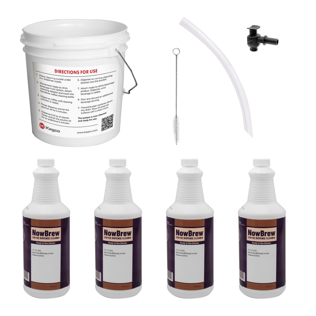 - Also includes four 32-oz. bottles of NowBrew BIB Coffee Dispense Cleaner
