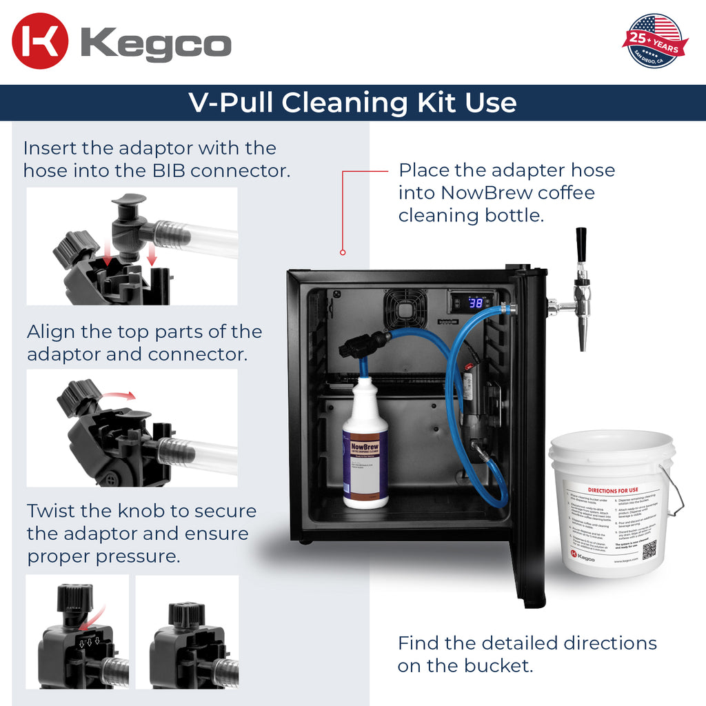 - Keep your BIB coffee dispensing kegerator clean with this Kegco V-Pull BIB Cleaning Kit!