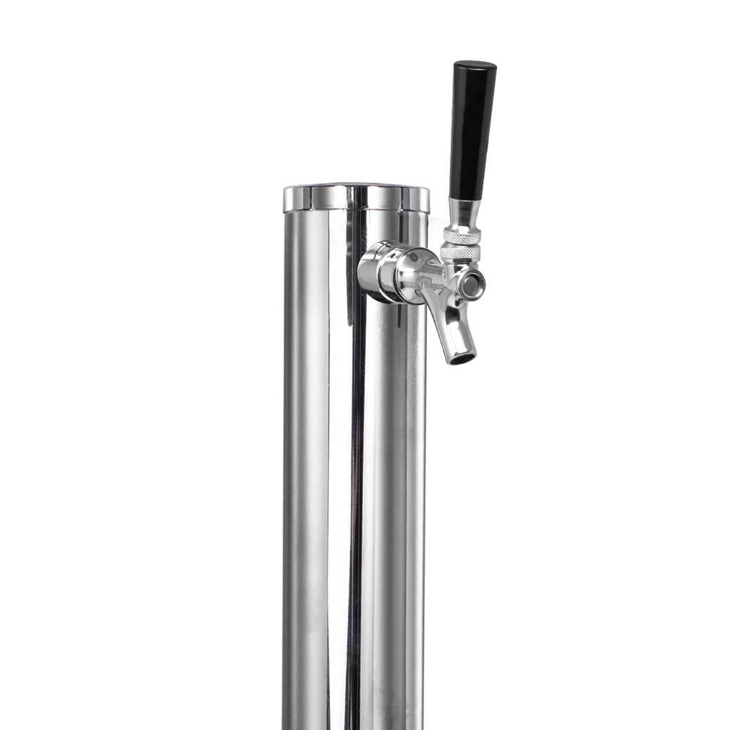 - Single tap dispense system includes a stainless steel beer tower with stainless steel faucet, a D system keg coupler, an empty 2.5 lb. CO2 tank, and a single gauge CO2 regulator