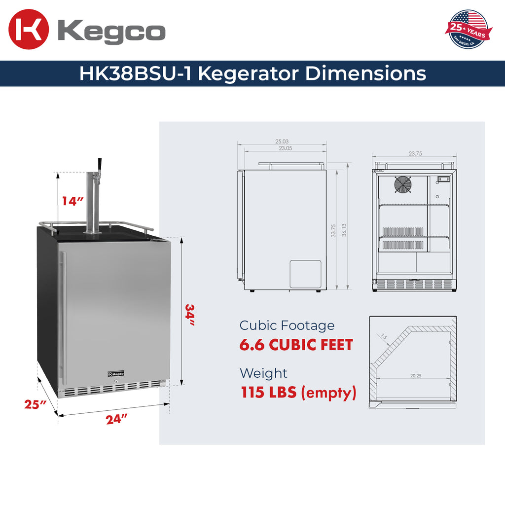 • Kegco HK38BSU-1 Undercounter Kegerator can be built into cabinetry for a seamless look that completes your home bar or kitchen