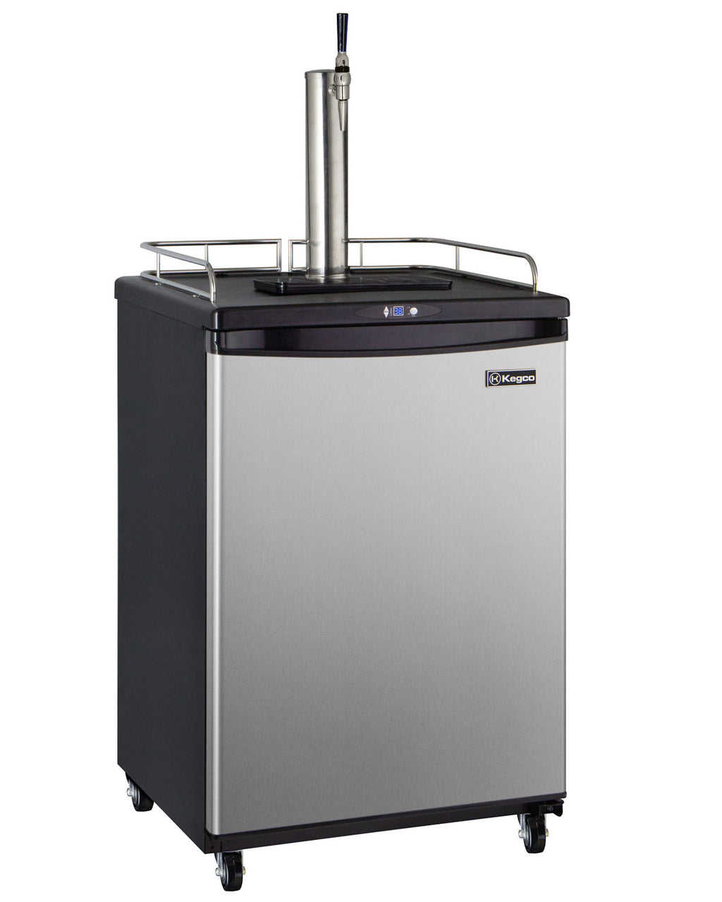Kegco's Single Tap Digital Guinness® Kegerator houses your kegs in an all-black cabinet with an elegantly designed field-reversible stainless steel door. This kegerator includes a draft tower with a stainless steel Guinness® dispensing stout beer faucet to help you achieve the perfect pour when serving Guinness® and other stout beers. The stout faucet's stainless steel contact design is developed exclusively for head retention and enhancing the pure creamy stout taste. Also, included are two removable wire shelves that allow you to easily convert this beer fridge into a regular all-refrigerator or beverage center when you need extra refrigerated storage space for food and other beverages. With 2-1/2" casters, you can quickly move this kegerator into any room in your home, allowing you to enjoy your favorite stout beers in your kitchen, home bar, or dining room.