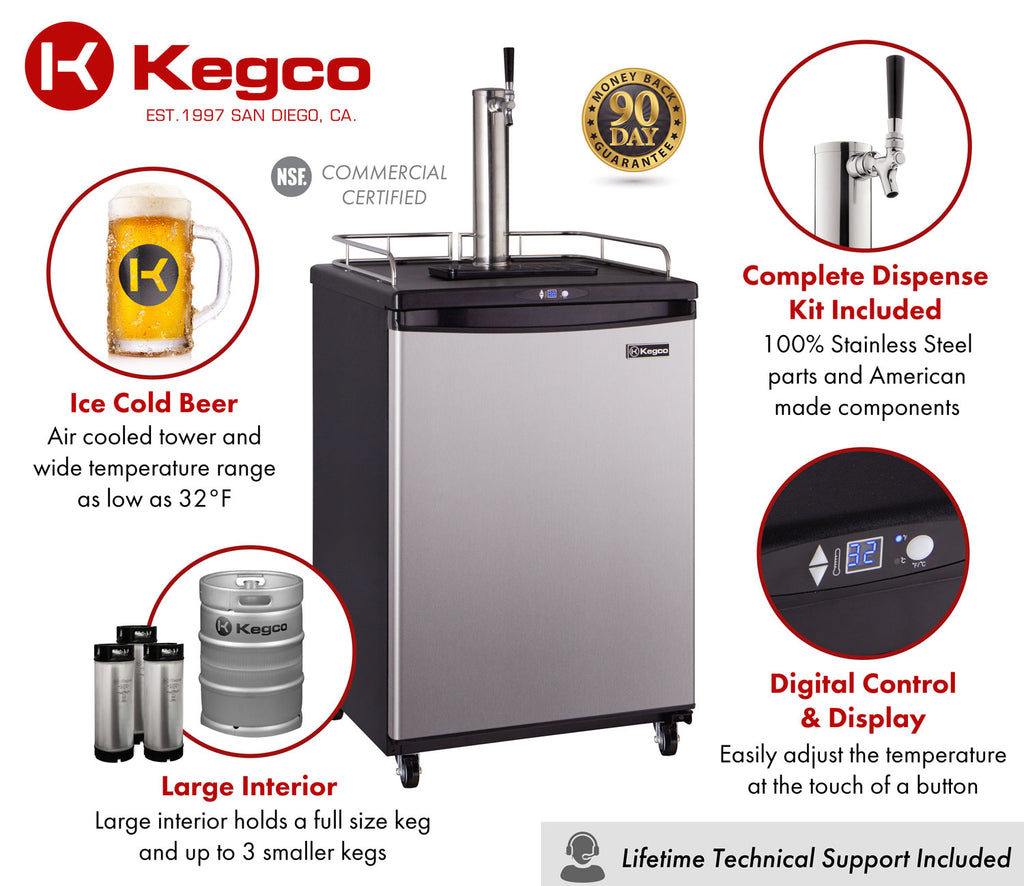 Durable enough to withstand the demands of busy commercial environments yet quiet and energy efficient enough for residential use, Kegco's Z163S-1NK Commercial Grade Single Faucet Kegerator sets a new standard for keg beer dispensing.