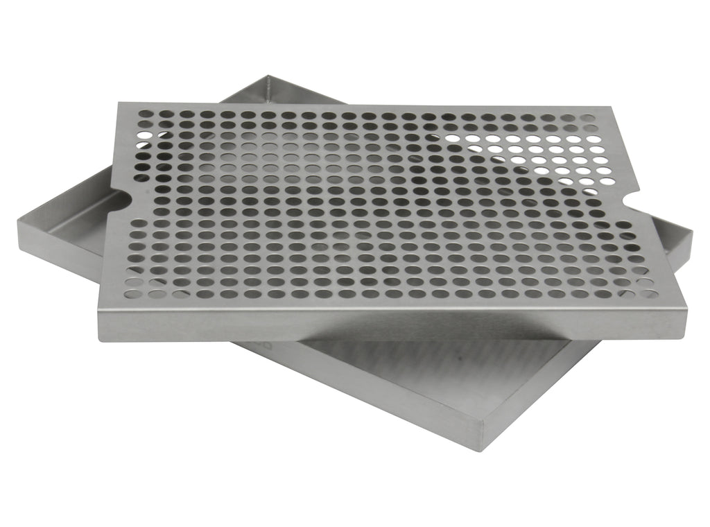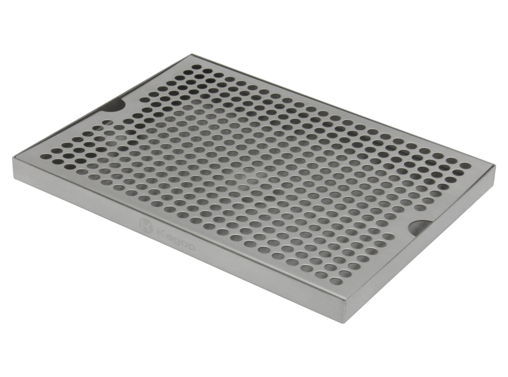 The Kegco SESM-129 12" Surface Mount Drip Tray with No Drain is ideal for kegerators or bar applications where running a drain would be difficult. This drip tray is constructed of stainless steel with an attractive brushed finish and features a detachable grill for easy cleaning. This extra large drip tray measures 12" long and 9" wide, making it capable of catching beer runoff from three to five draft beer faucets at one time. To empty the surface mount tray, carry it over to the sink and empty it. To clean, simply put it into the dishwasher.