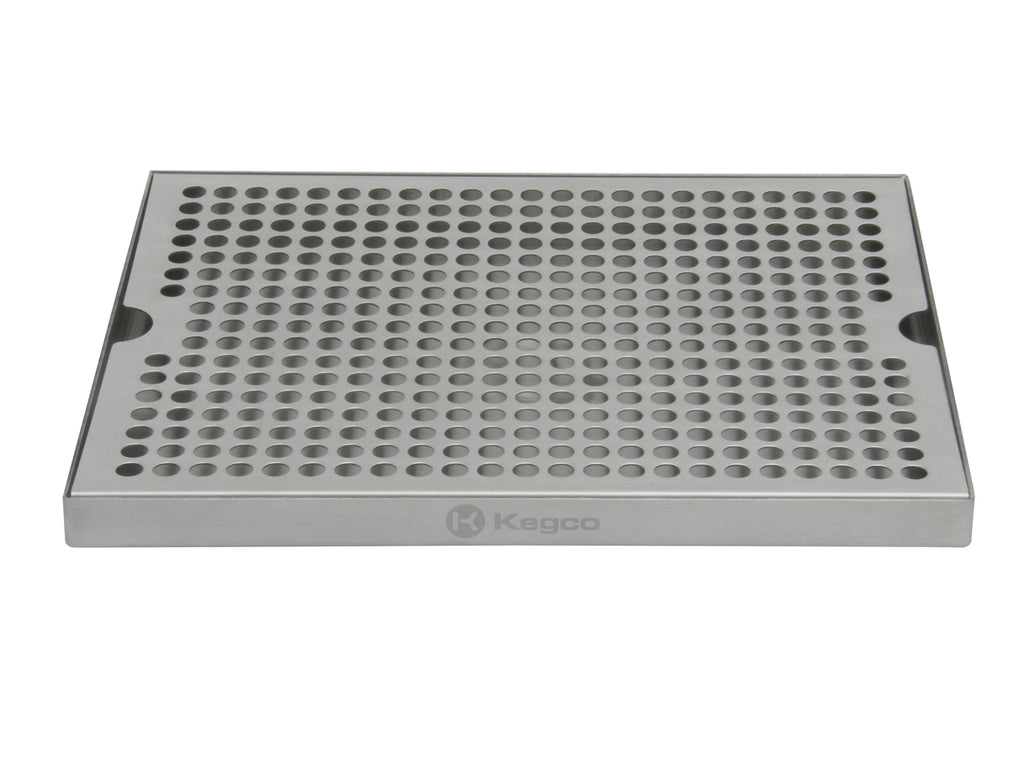 - The Kegco SESM-129 12" surface mount drip tray with no drain is ideal for environments where you lack the ability to set up a hose for drainage