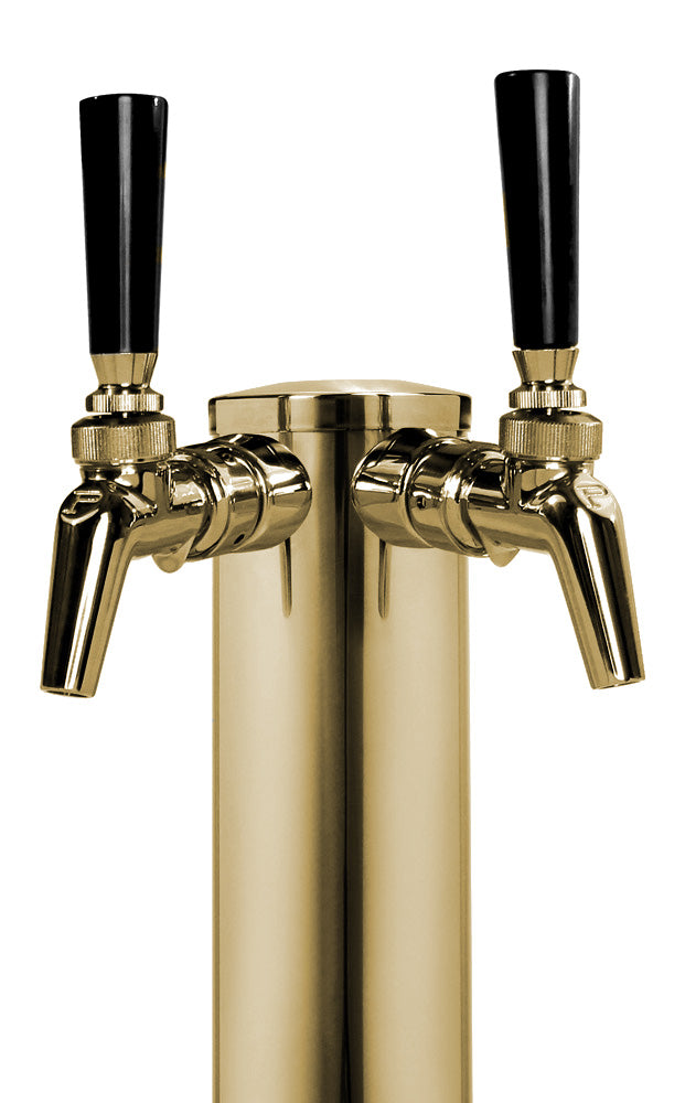 The Kegco DT145-2B-630 Double Faucet Draft Beer Tower has a 3" diameter and measures 14" tall making it 2" longer than most standard towers giving you more than enough space to fill up your pint glass or growler. The 3" diameter allows enough air circulation to help maintain the draft beer temperature. This tower is constructed of brass with a polished finish and comes equipped with two Perlick Flow Control Faucets, two sleek black faucet knobs, and two 5' lengths of 3/16" clear beer tubing with nozzle and hex nut assemblies. The Kegco tower is compatible with all standard keg couplers and can be mounted with the included gasket and screws.