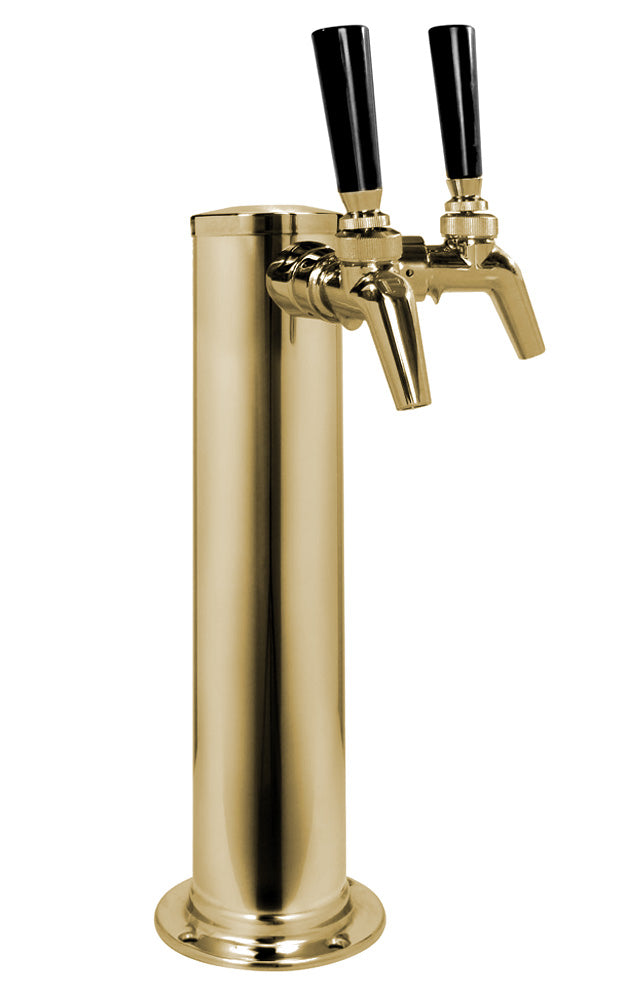 - This tower is constructed of brass with a polished finish and comes equipped with two Perlick Flow Control Faucets, two sleek black faucet knobs, and two 5' lengths of 3/16" clear beer tubing with nozzle and hex nut assemblies