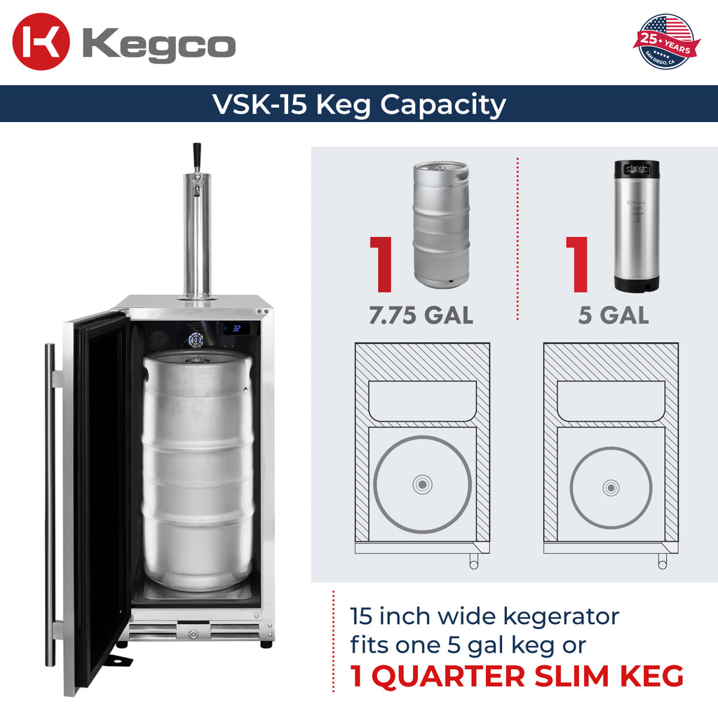 - Compact design that is capable of accommodating 7.75 gallon quarter slim kegs as well as 5 gallon sankey or homebrew kegs