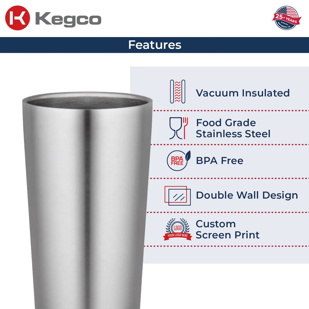 - 16 oz. Stainless Steel Vacuum Insulated Beer Cup constructed of highly durable food grade stainless steel