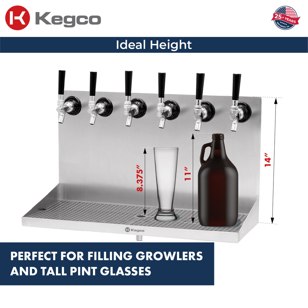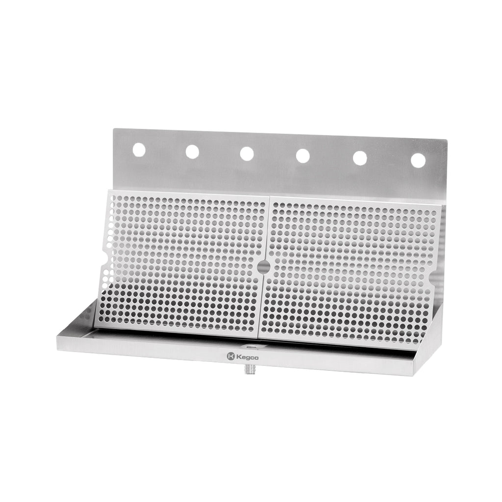 Kegco SEWM-2410-6 Wall Mount Drip Tray with Drain - Perfect for Growlers, Tall Glasses & Heavy Use