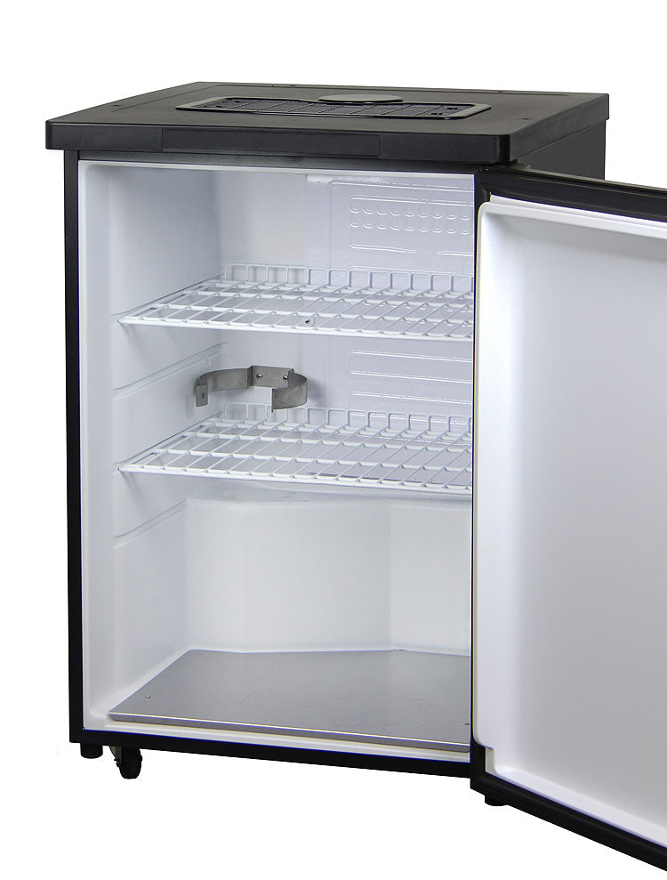 - Interior can store up to one full size, pony, or quarter slim keg, two 5 gallon commercial kegs along with one 5 gallon home-brew keg, or up to three 5 gallon home-brew kegs
