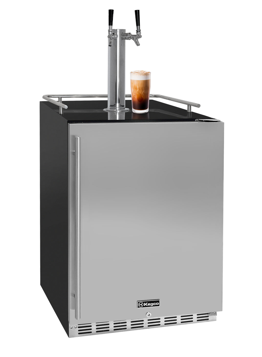 The front-venting design allows you the choice to build this Javarator into cabinetry for a seamless look or stand on its own. A stainless steel guard rail is included to prevent glasses or mugs from sliding off the top in freestanding applications.