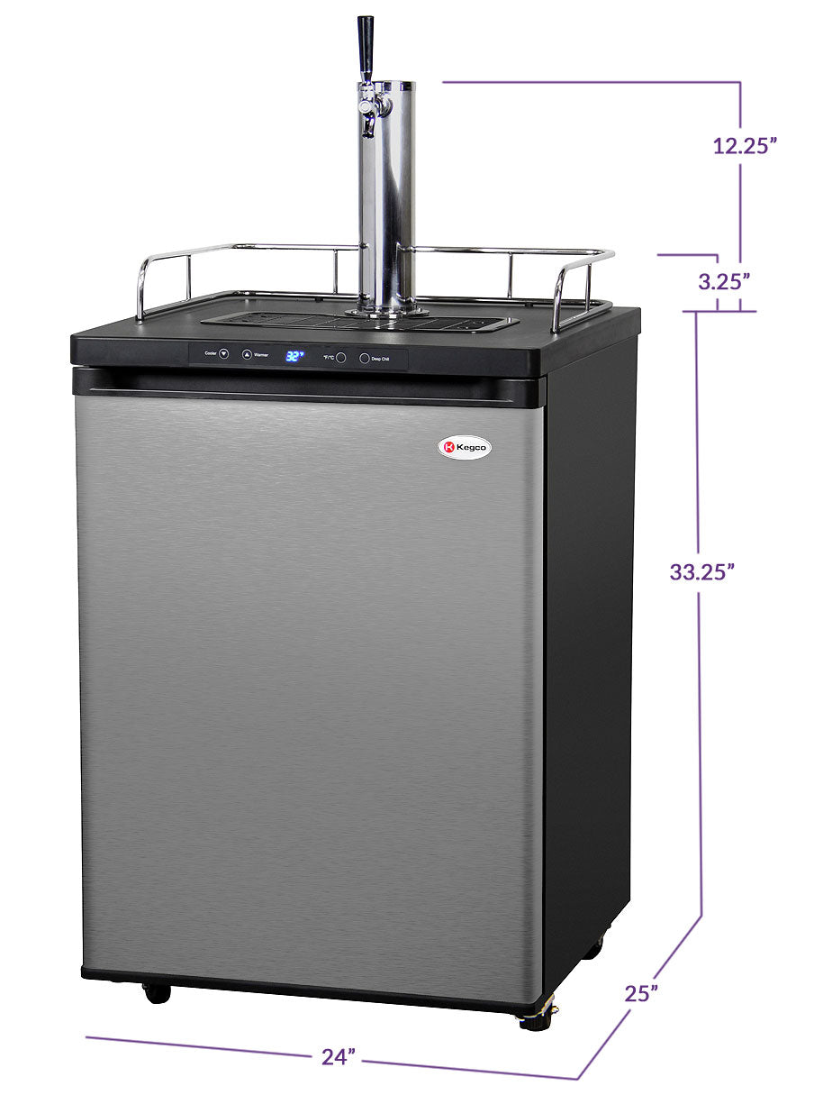 The Kegco ICK30S-1 Digital Javarator adds digital functionality and a wider available temperature range to your cold-brew coffee dispense systems. Now you have the ability to see your specific temperature setting and set it easily with the push of a button, in addition to having a wider available temperature range for more precise temperature control. This Javarator comes complete with everything you need to dispense Cornelius kegs of iced coffee, making it even more convenient - and more fun! - to store, refrigerate, and dispense a refreshing glass of chilled coffee. Comes with a Kegco Exclusive tower that measures 14" tall, giving you an extra 2" of space over standard draft beer towers to allow you to easily fill tall growlers and pint glasses.