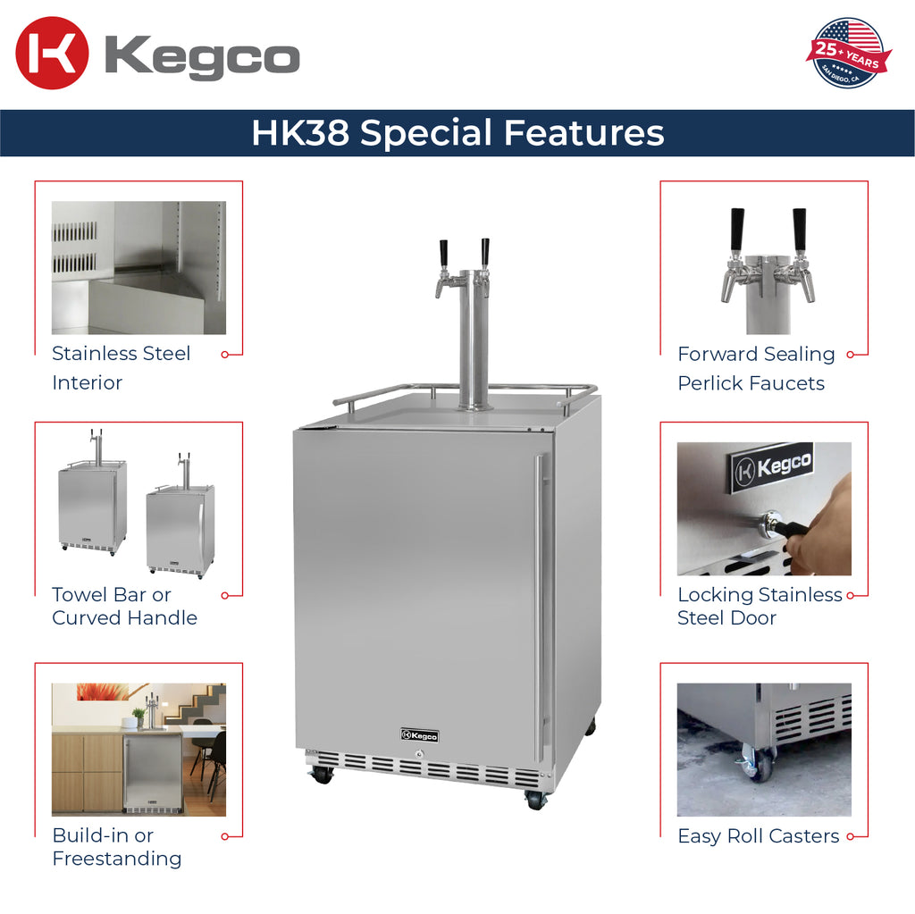 The beautiful stainless steel interior is more durable than the plastic liner found in many competing models and easy to clean. Enough floor space is provided to house a full size keg, two quarter slim kegs or up to three 5 gallon kegs for a variety of configurations. PLEASE NOTE: Will not hold 50L European kegs.