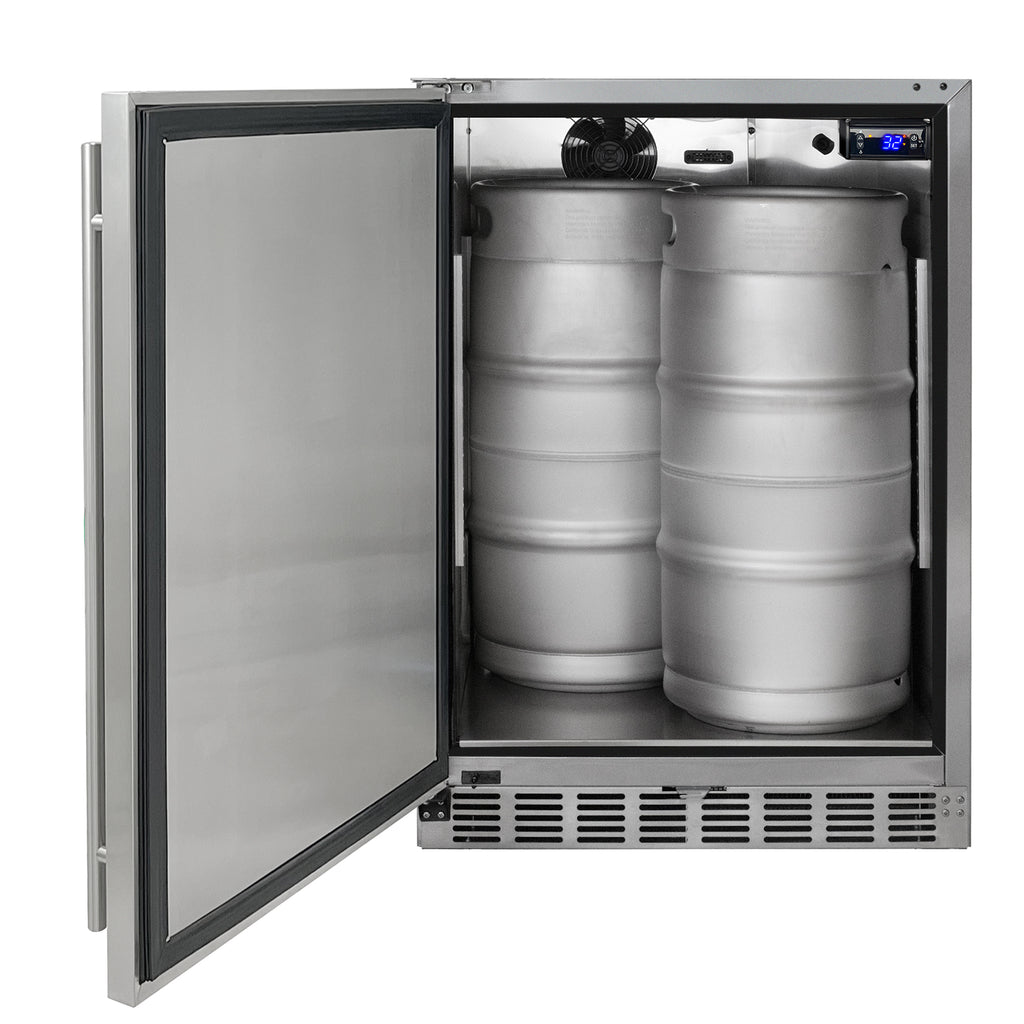 The attractive stainless steel door includes a lock to keep the contents secure. The kegerator comes equipped with a door alarm that will sound if the door is left open for too long.