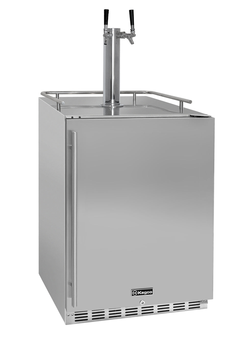 The front-venting design allows you to build this kegerator into cabinetry for a seamless look that is easy to maintain and provides more floor space. A stainless steel guard rail is included to prevent glasses or mugs from sliding off the top in freestanding applications.