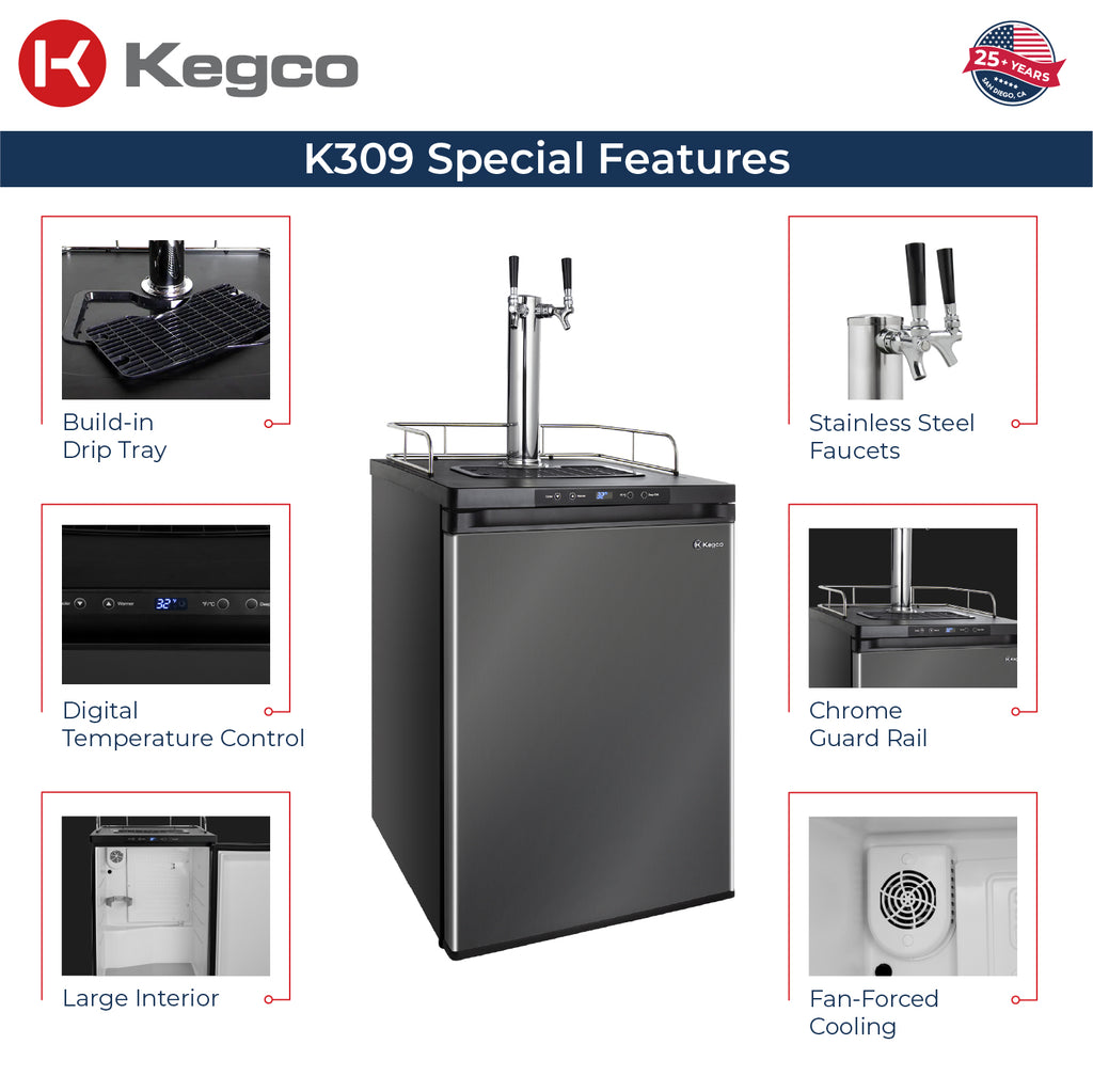 Spacious interior can easily hold any full-size keg, including Coors kegs, Miller kegs, and rubber kegs. It can also hold up to two 5 gallon D system kegs or up to three 5 gallon Cornelius ball lock home-brew kegs, allowing you to dispense more than one type of beer at a time.
