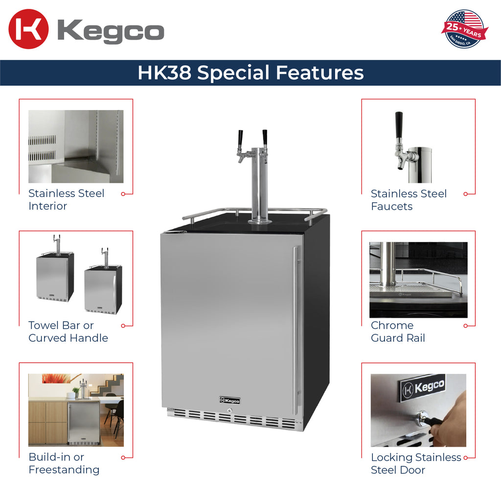 The beautiful stainless steel interior is more durable than the plastic liner found in many competing models and easy to clean. Enough floor space is provided to house a full size keg, two quarter slim kegs or up to three 5 gallon kegs for a variety of configurations. PLEASE NOTE: Will not hold 50L European kegs.