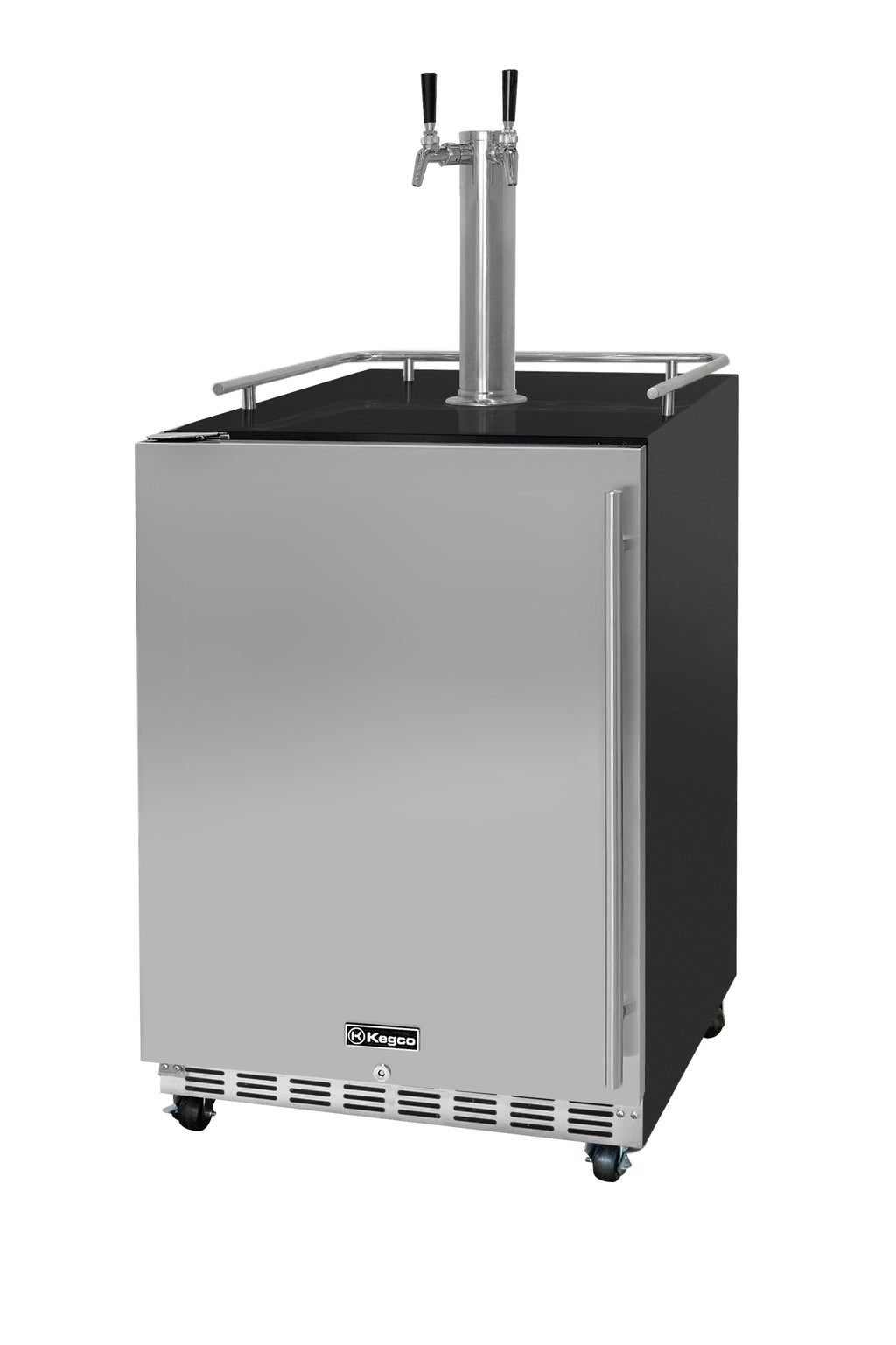 The front-venting design allows you to build this kegerator into cabinetry for a seamless look that is easy to maintain and provides more floor space. A stainless steel guard rail is included to prevent glasses or mugs from sliding off the top in freestanding applications.