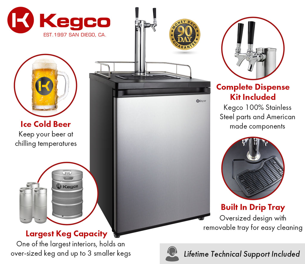 - Features one of the largest interior capacities on the market, capable of accommodating one full size, pony, or quarter slim keg, two 5 gallon commercial kegs along with one 5 gallon home-brew keg, or three 5 gallon home-brew kegs