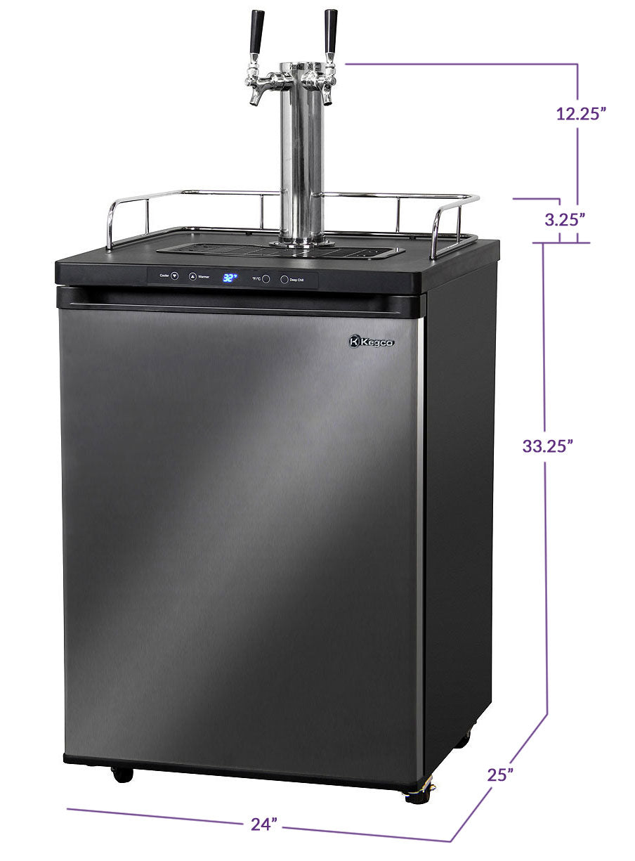 The Kegco KOM30X-2 Double Faucet Digital Kombucharator adds digital functionality and a wider available temperature range to your kombucha dispense system. It comes complete with everything you need to simultaneously dispense two cornelius kegs of kombucha, the nutritional probiotic tea that is packed with compounds that support your digestive and immune systems, detoxify, energize, clarify your skin, prevent disease and elevate your mood. Now you have the ability to see your specific temperature setting and adjust it easily with the push of a button, in addition to having a wider available temperature range for more precise temperature control. Comes with a Kegco Exclusive tower that measures 14" tall, giving you an extra 2" of space over standard draft beer towers to allow you to easily fill tall growlers and pint glasses.