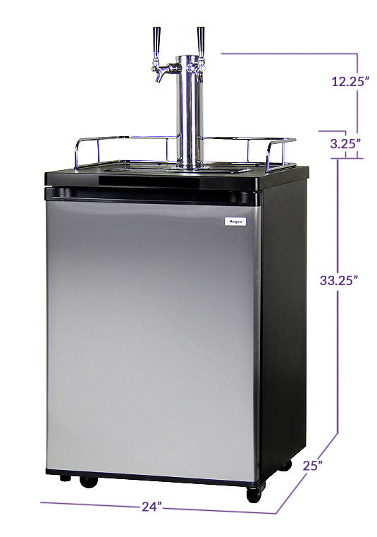 The all-new KOM20S-2 Kombucharator from Kegco is a high quality keg tapper that includes with everything you need to dispense two kegs of brewed kombucha, the nutritional probiotic tea that is packed with compounds that support your digestive and immune systems, detoxify, energize, clarify your skin, prevent disease and elevate your mood. It has all the necessary equipment to pour a cold, healthy glass of 'buch' and this kombucha keg cooler can also easily be converted to a standard refrigerator with two adjustable storage shelves. It's stainless steel interior floor plate provides durability by displacing the weight of the keg evenly over the floor of the cabinet and allows you to slide the kegs in and out smoothly. Comes with a Kegco Exclusive tower that measures 14" tall, giving you an extra 2" of space over standard draft beer towers to allow you to easily fill tall growlers and pint glasses.