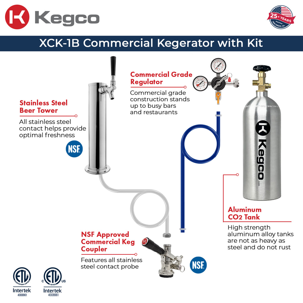 24" Wide Single Tap Commercial Black Kegerator with Kit - Includes Dispense Kit