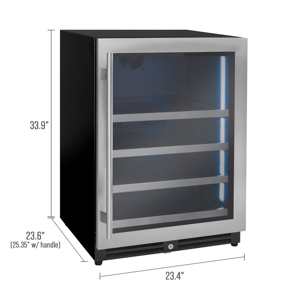 The seamless stainless steel door showcases an elegant and clean profile while also resisting visible fingerprints. The tinted LowE glass protects your beverages from the harmful effects of UV light.