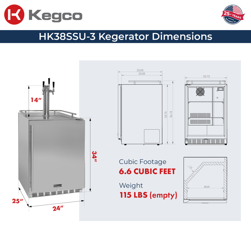 The beautiful stainless steel interior is more durable than the plastic liner found in many competing models and easy to clean. Enough floor space is provided to house a full size keg, two quarter slim kegs or up to three 5 gallon kegs for a variety of configurations. PLEASE NOTE: Will not hold 50L European kegs.
