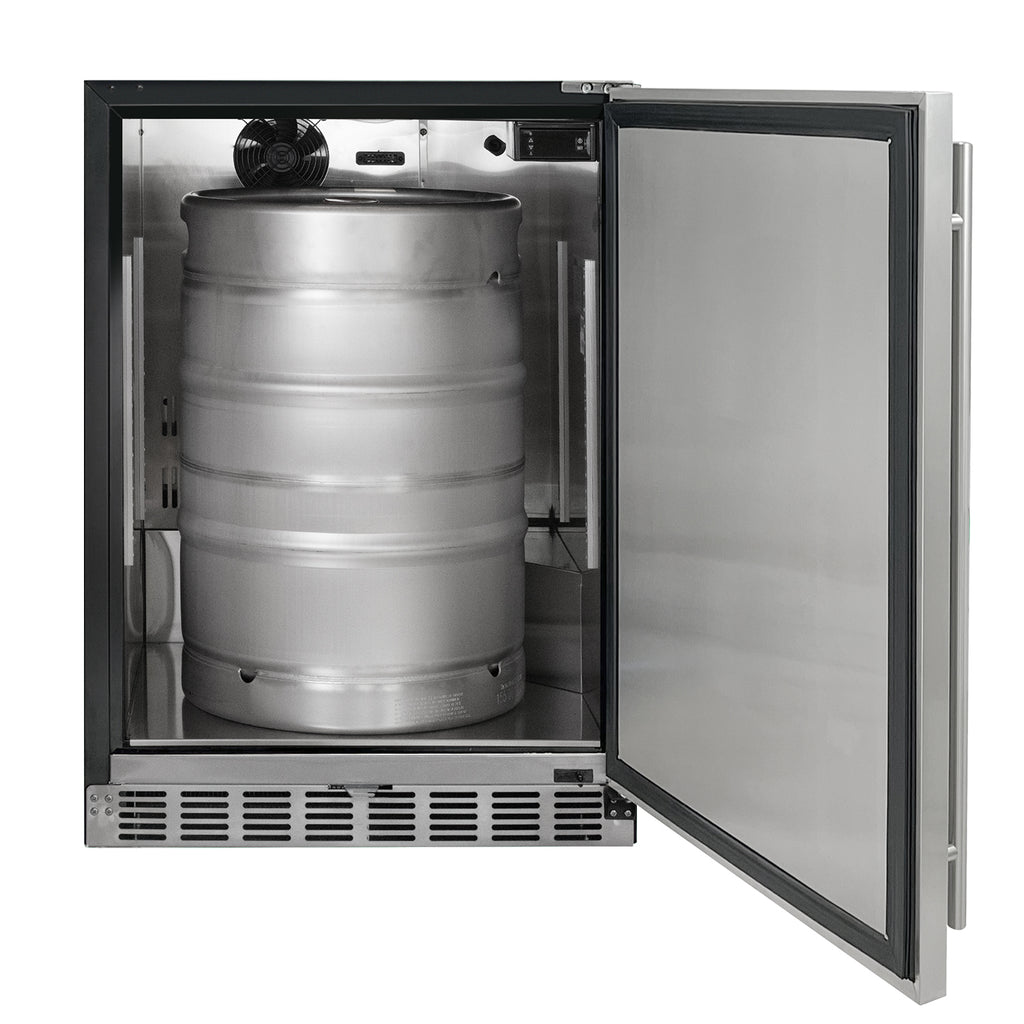 The attractive stainless steel door includes a lock to keep the contents secure. The kegerator comes equipped with a door alarm that will sound if the door is left open for too long.