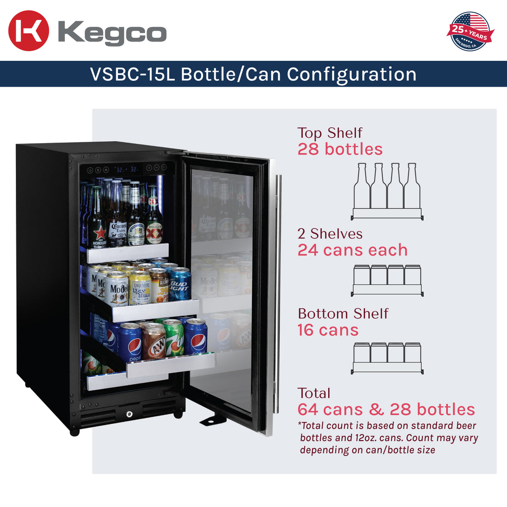 The VS15-BK Built-In Undercounter Side-by-Side Beverage Center and Single Faucet Keg Dispenser is the ultimate beverage dispensing unit to upgrade your home bar or kitchen. This sleek and sophisticated kegerator and refrigerator combination lets you have the best of both worlds. Cold beer on tap and perfectly chilled drinks are within arms reach with this beverage center that can hold up to 7 gallons of draft beer, 28 standard beer bottles, and 64 standard 12 oz. beverage cans. This unit is perfect for daily use and entertaining, providing you with a variety of beverage options. The unit is designed with a French door swing to easily access both the keg and your beverages simultaneously. Digital temperature display for both sides allows you to easily maintain and control the temperature. Manufactured by the industry leaders in the beverage industry, Kegco and Allavino, these units include only premium parts with all stainless steel contact and all parts are serviceable. PLEASE NOTE THIS IS TWO SEPARATE UNITS