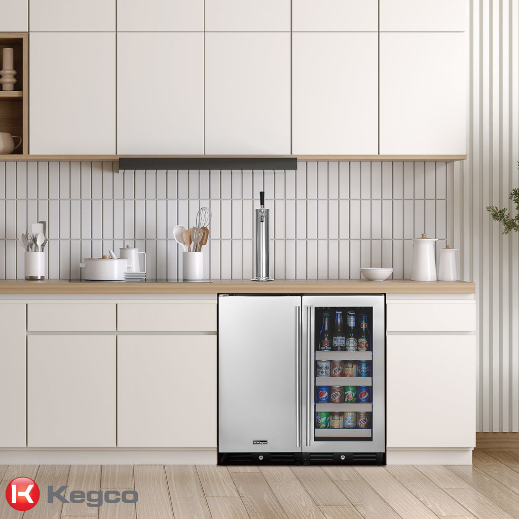 This kegerator and beverage center combination can be built into your cabinetry to provide an elegant storage solution that will look great in any room of your home. Front venting installation ensures proper air circulation allowing undercounter placement for a seamless living space.
