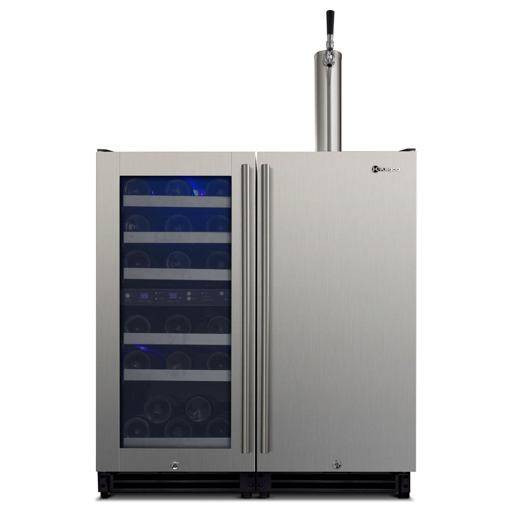 The VS15-2WK Built-In Undercounter Side-by-Side Two Zone Wine Cooler and Single Faucet Keg Dispenser is the ultimate beverage center to upgrade your home bar or kitchen. This sleek and sophisticated kegerator and wine refrigerator combination lets you have the best of both worlds. Cold beer on tap and perfectly chilled wine is within arms reach with this beverage center that can hold up to 7 gallons of draft beer and up to 30 bottles of wine. This unit is perfect for daily use and entertaining, providing you with a variety of beverage options. The unit is designed with a French door swing to easily access both the keg and wine bottles simultaneously. Digital temperature display for both sides allows you to easily maintain and control the temperature of your beverages. Manufactured by the industry leaders in the beverage industry, Kegco and Allavino, these units include only premium parts with all stainless steel contact and all parts are serviceable.