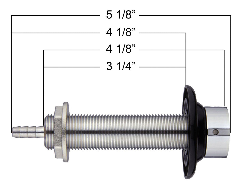 - The Kegco SHANK4-ASC 4-1/8" Nipple Shank is has a 3/16" hose nipple to attach a beer line to a faucet and can be mounted through a 1" hole in a wall, refrigerator door, or cabinet