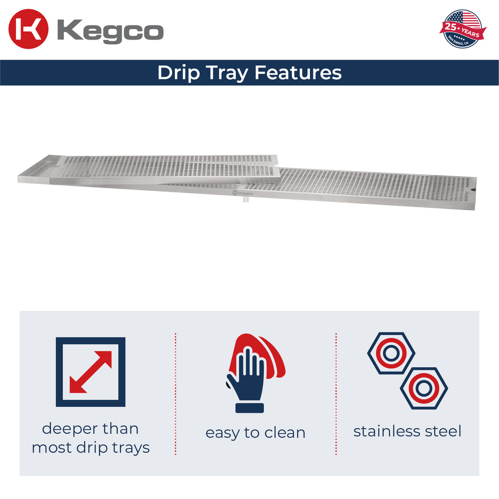 Elevate your beer dispensing experience with the Kegco SESM-489D Surface Mount Drip Tray. Designed for both functionality and durability, this drip tray offers more space and enhanced protection than most others on the market.