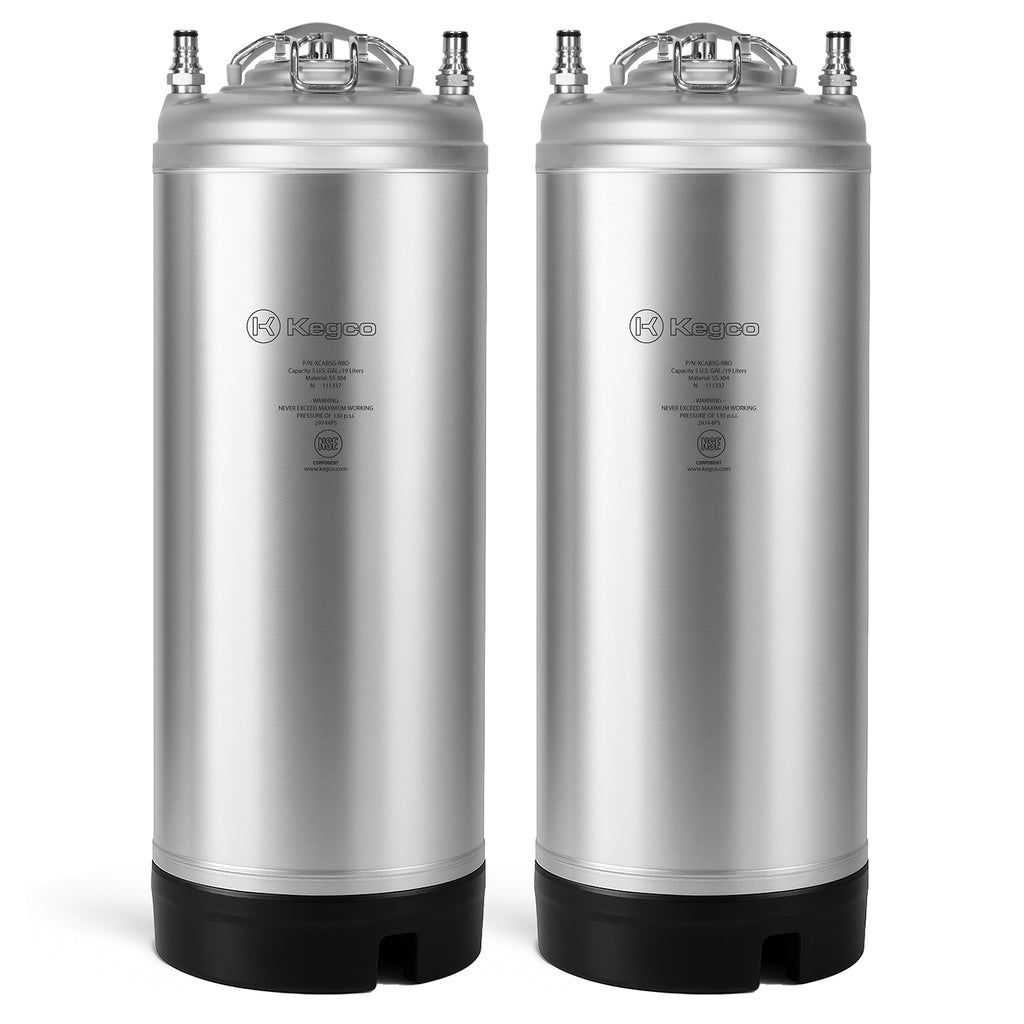 These Kegco 5 Gallon Home Brew Beer Kegs are designed for use will ball lock keg couplers. These homebrew kegs, also known as Pepsi Kegs or Cornelius Kegs, are constructed of 304 grade stainless steel and have stainless steel strap handles for easy carrying. They feature permanently molded rubber bottom skirts with four openings to enhance the drain of water when the keg is upside down. The stainless steel lids with pressure release valves fasten tightly to the body and can be opened to fill the keg with your favorite beverage, be it beer, soda, wine, kombucha or cold-brewed coffee. The ball lock fittings are easily accessible for convenient cleaning and maintenance.