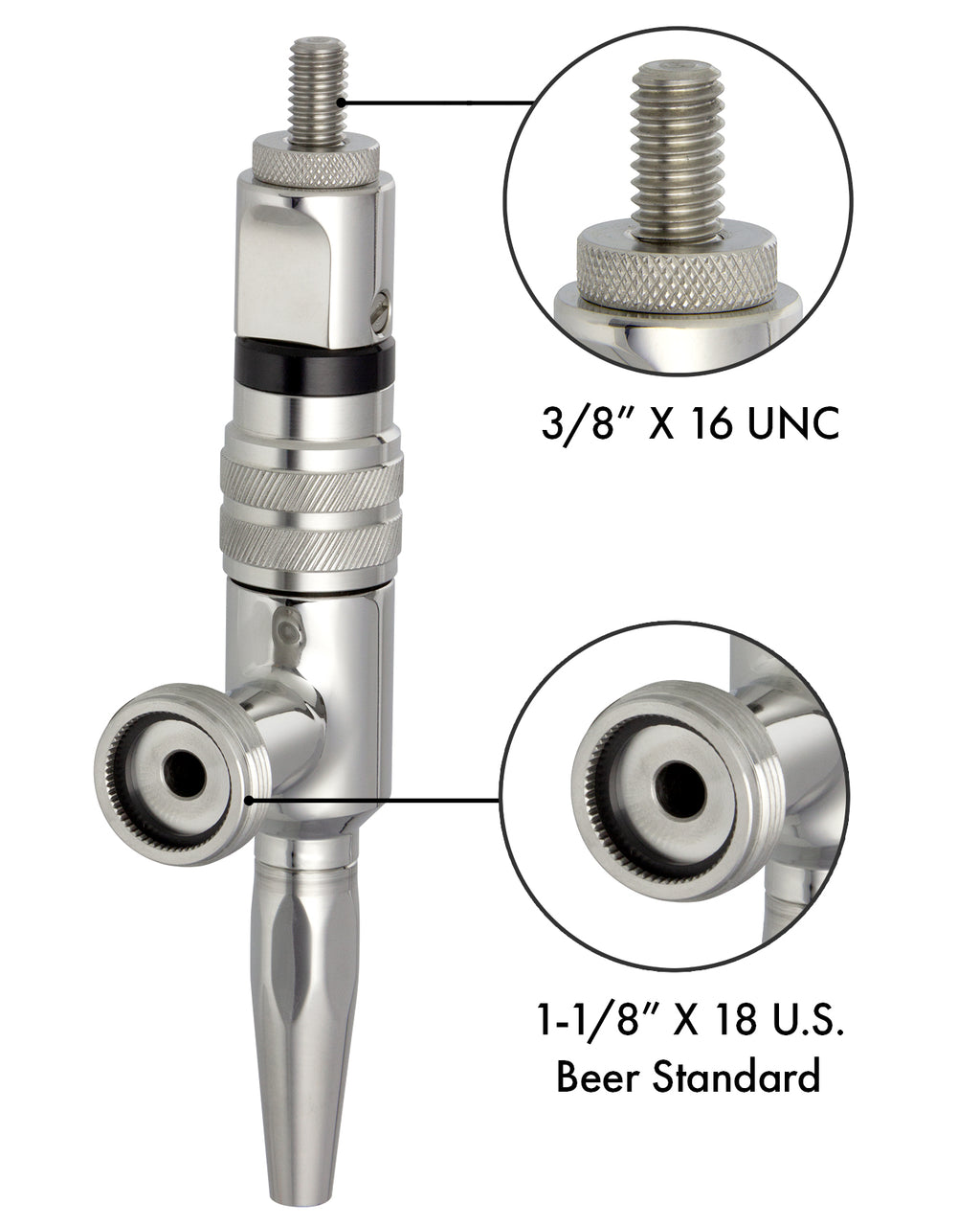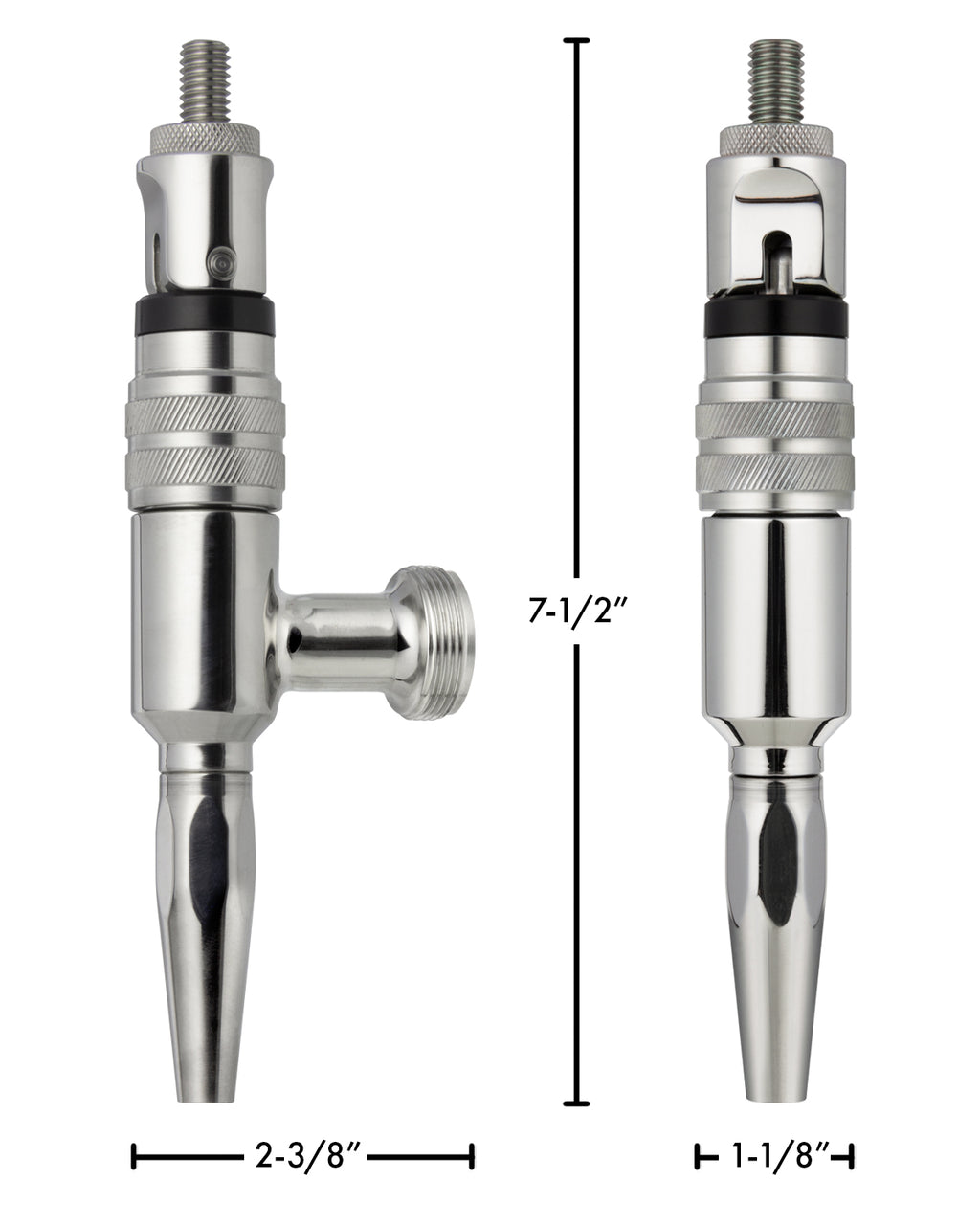 The Kegco Stainless Contact Guinness® Dispensing Stout Beer Faucet features 100% stainless steel contact for the utmost in sanitation and durability. This stout faucet is required to properly pour Guinness® and achieve the famous and unique head on the beer. This specialty European stout beer faucet works by pulling forward and down on the tap handle. The economy stout faucet includes a restricted spout that contains a tiny disc that helps slow down the pour and allows the beer to pour properly. If you remove the restrictor disc you can use the faucet to pour any regular beer.
