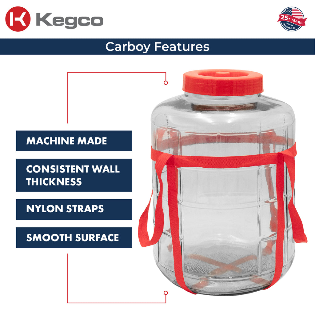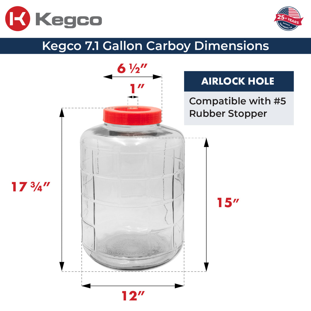 The Kegco 7.1 Gallon Wide Mouth Glass Carboy the ideal fermentation vessel! You can brew up to 6 gallons without having to worry about the kraeusen clogging up your airlock on big beers. The jar's 6" wide opening makes it easy to reach inside the jar to add and remove ingredients or clean every inch of the inner surface. The smooth glass surface does not scratch easily, so these jars are easy to sanitize and do not harbor bad odors or flavors. They can provide decades of great performance if you handle them with care because they do not break down like plastic carboys or buckets.