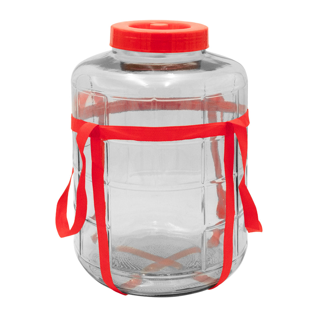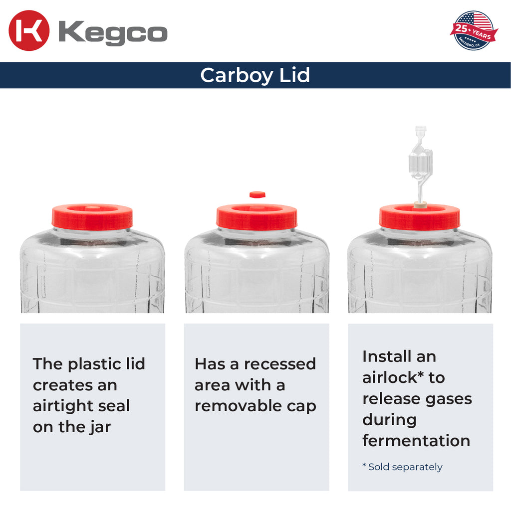 The plastic lid creates an airtight seal on the jar and you can install an airlock in the recessed area on the lid to release gasses during fermentation. By installing the included breather cap and filling the recessed area with sanitizer, gas will bubble out without letting in oxygen or other contaminants. Transportation of the glass container is uncomplicated thanks to the nylon strap handles that are included.