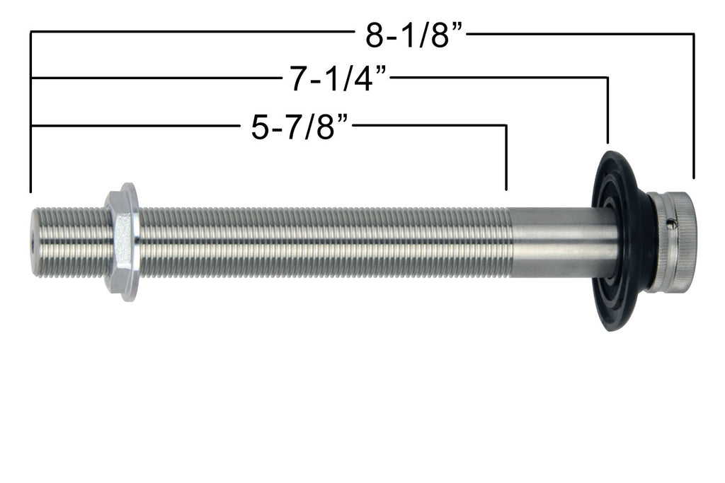 This stainless steel shank measures 8-1/8" long with a 1/4" I.D. bore and can be installed into an existing shank hole. It comes with a black flange on the front and a compression ring on the back, which is used to secure the shank to the mounting surface. The beer faucet is not included. Larger and smaller sizes are available.