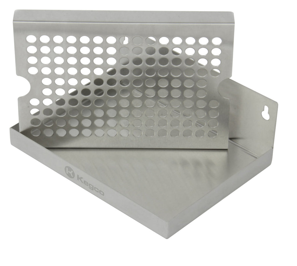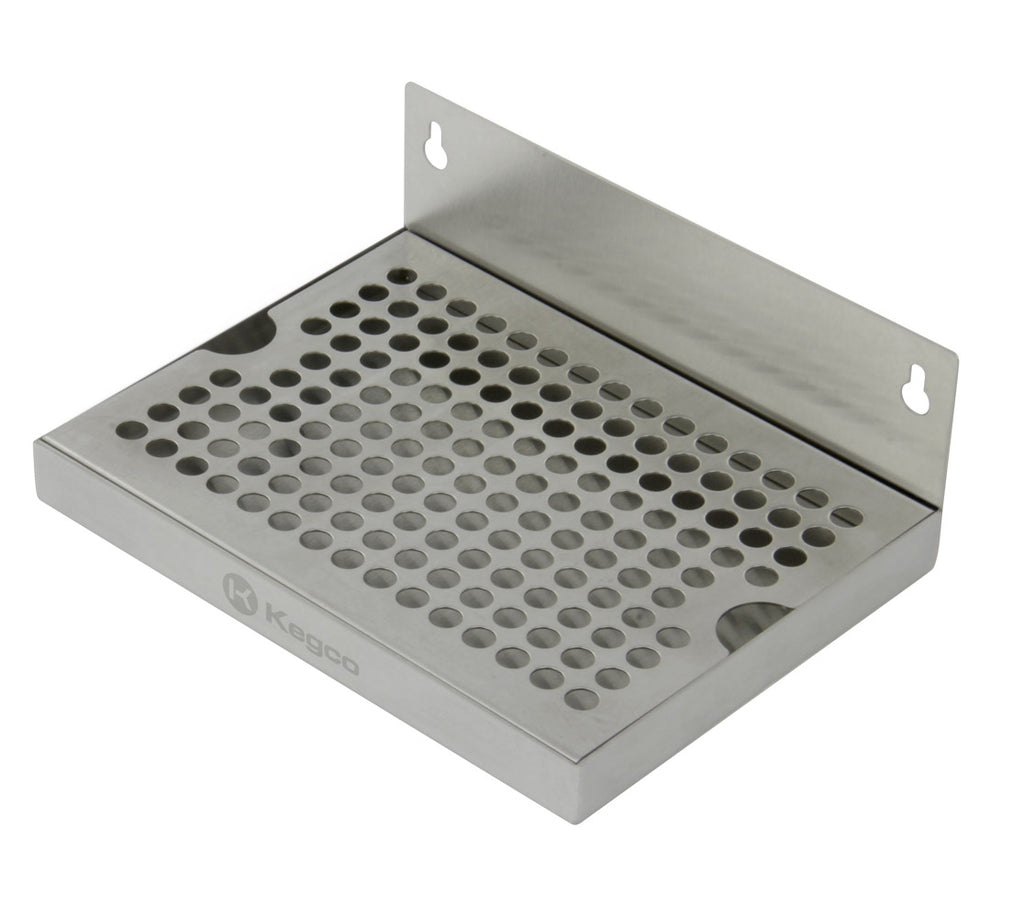 The Kegco SEWM-86 8" Wall Mount Drip Tray with No Drain is popular for its unique size, clean design, and durability. The large size helps it catch multiple faucets and holds more liquid so it can be emptied less frequently. The drip tray is constructed of stainless steel and features two screw holes on the backsplash that allow the tray to be mounted to a wall or door. This tray does not include a drain but does include a removable grill that makes for easy manual cleaning.