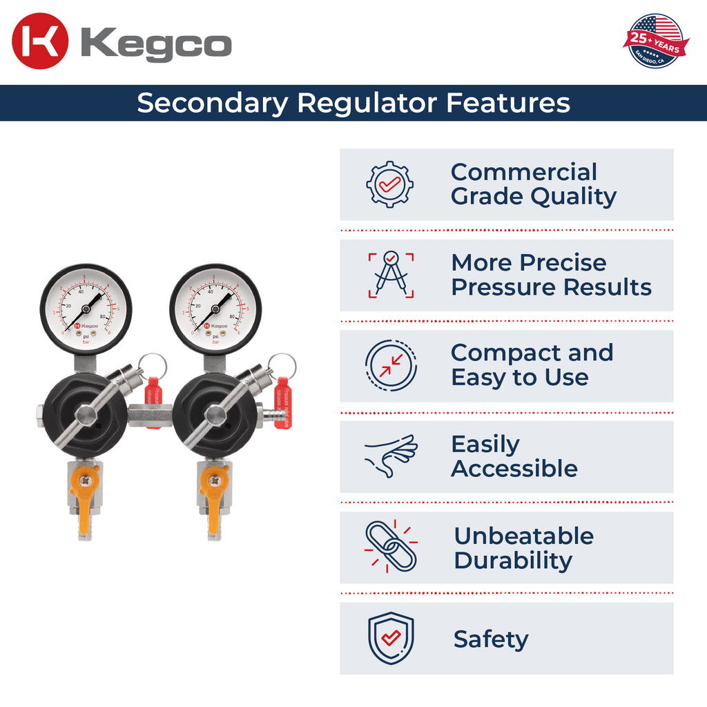 - Commercial Grade Performance. The Kegco YH-76S-2 Secondary Regulator delivers consistent peak performance, built to withstand tough commercial environments.