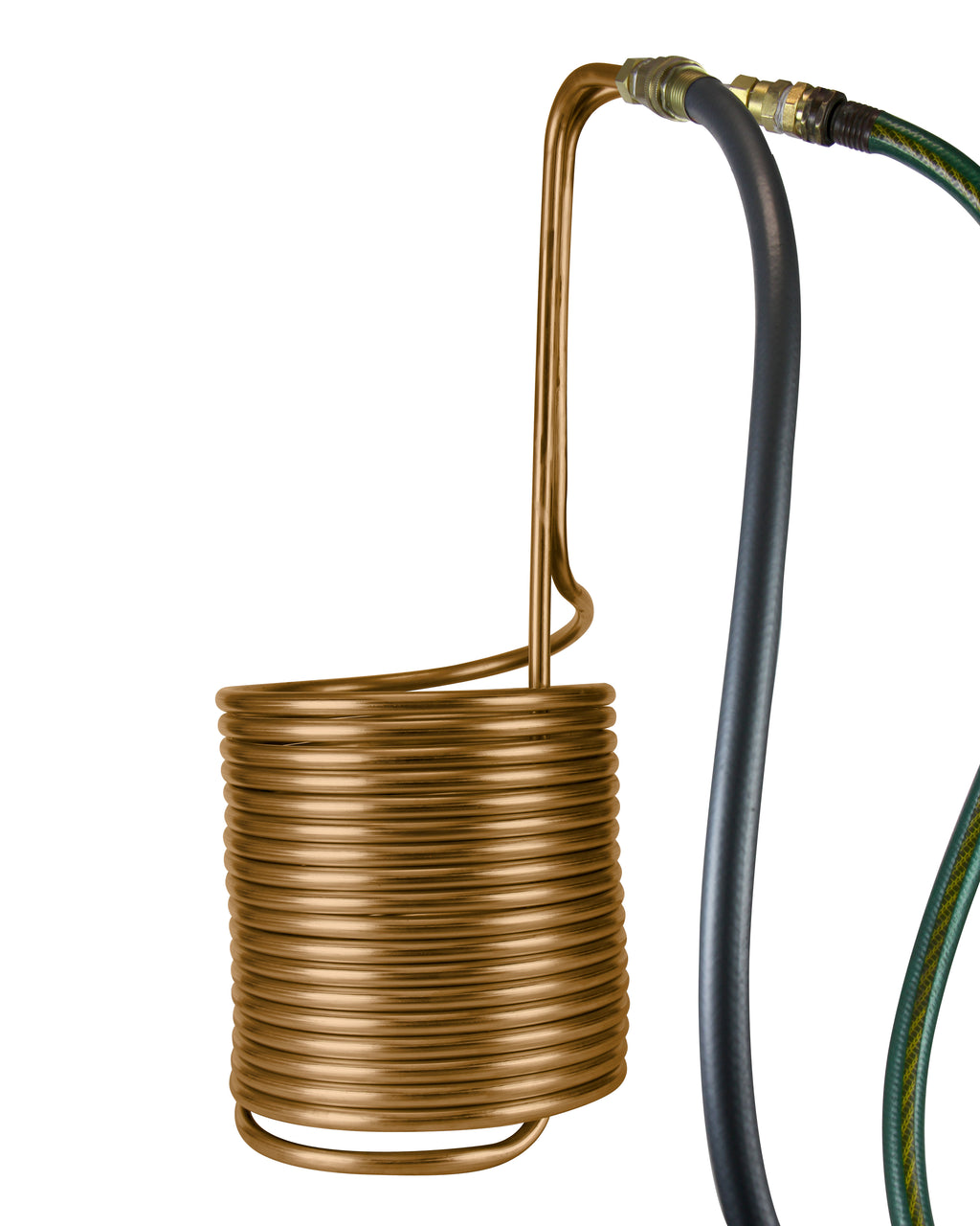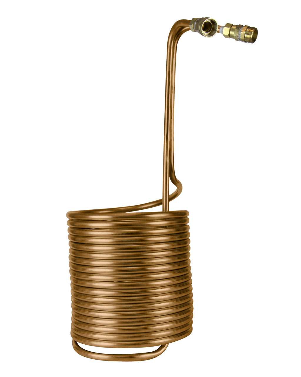 - Constructed from 50' of 1/2" copper tubing and wound into a tight stack of 12" diameter coils perfectly sized for 14 to 30 gallons of wort