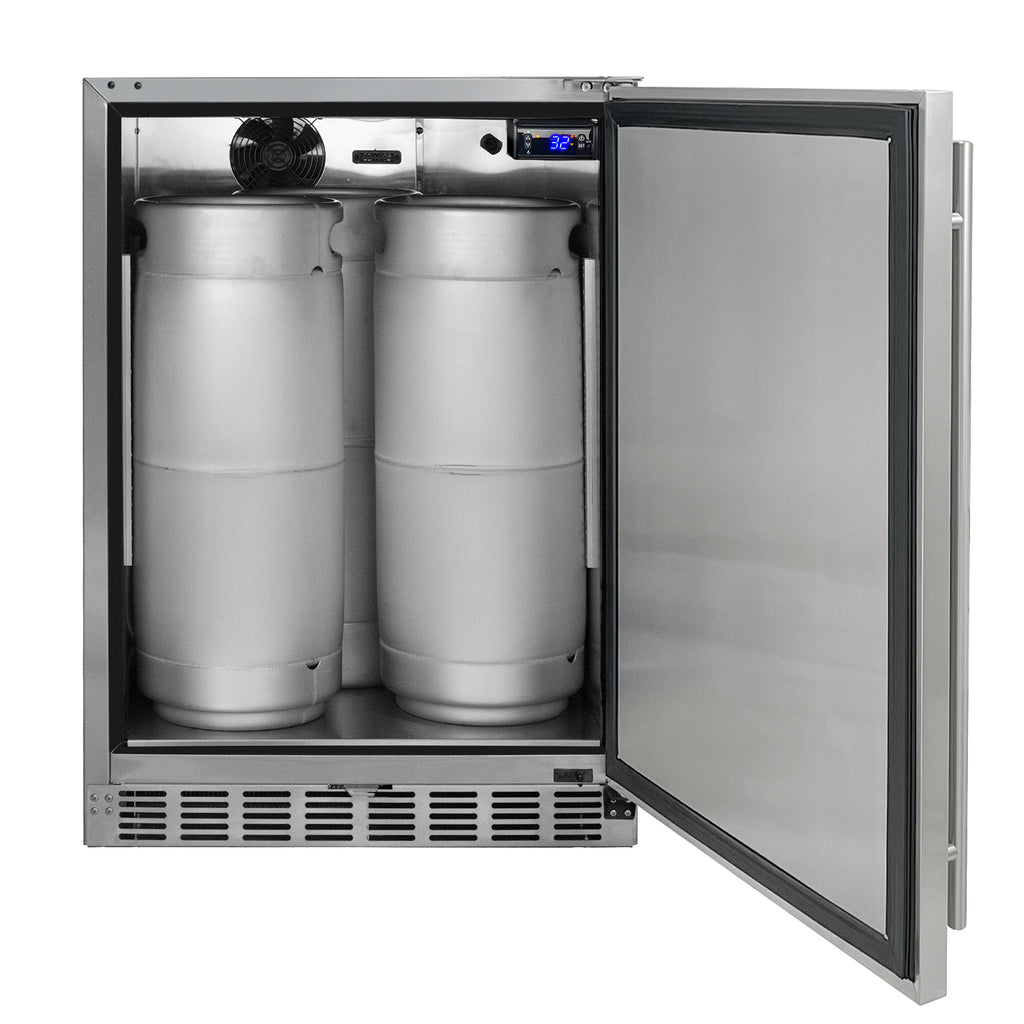 The beautiful stainless steel interior is more durable than the plastic liner found in many competing models and easy to clean. Enough floor space is provided to house a full size keg, two quarter slim kegs or up to three 5 gallon kegs for a variety of configurations. PLEASE NOTE: Will not hold 50L European kegs.
