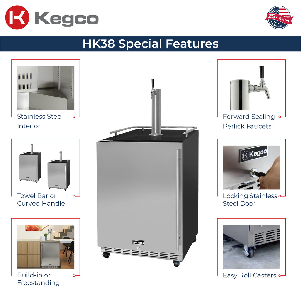 The beautiful stainless steel interior is more durable than the plastic liner found in many competing models and easy to clean. Enough floor space is provided to house a full size keg, two quarter slim kegs or up to three 5 gallon kegs for a variety of configurations. PLEASE NOTE: Will not hold 50L European kegs.
