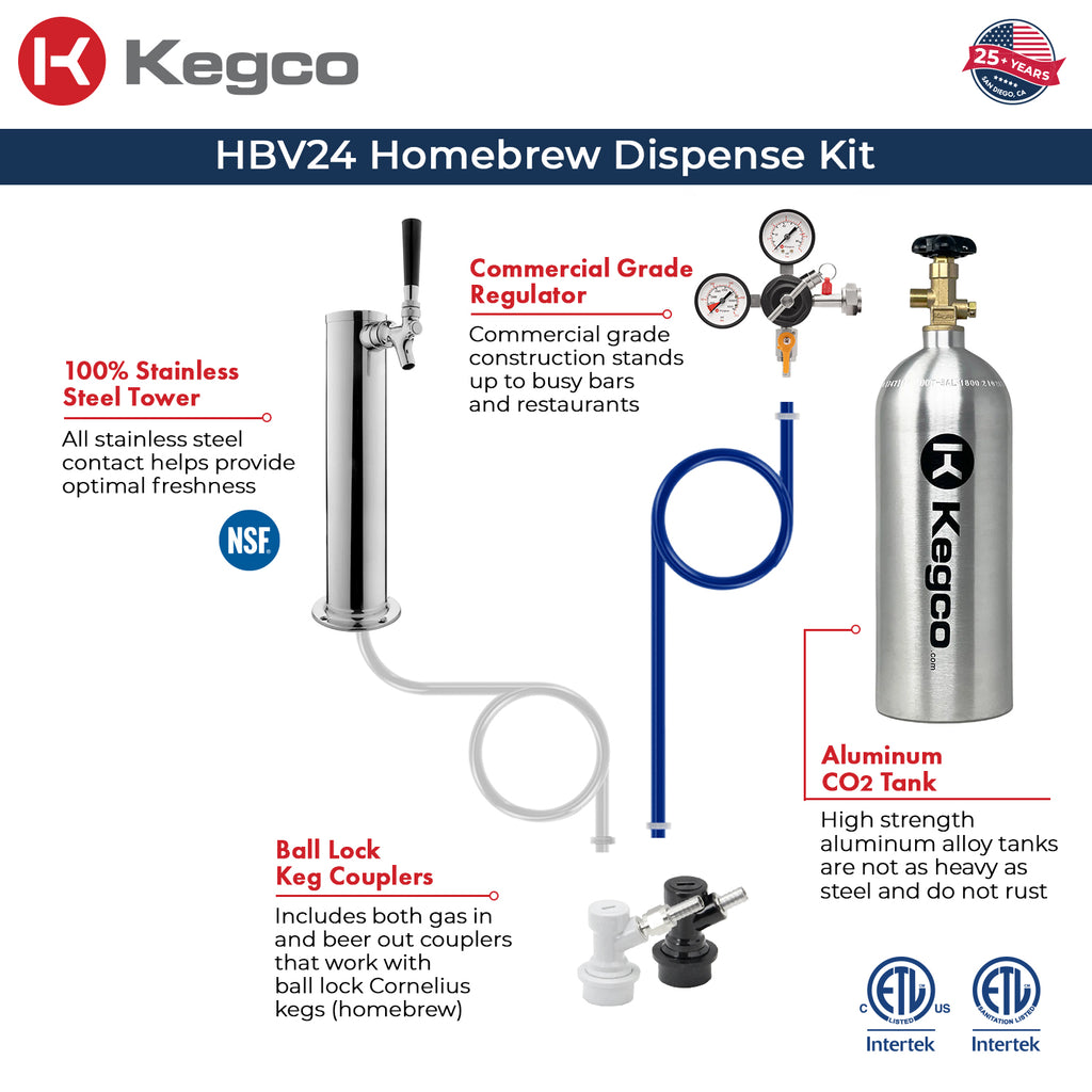 Dispense System includes tower, regulator, homebrew keg coupler, and CO2 tank
