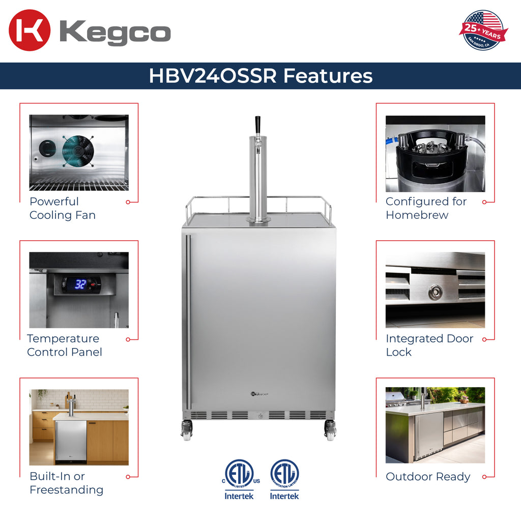 V24 Homebrew Kegerator - Outdoor 24" Wide Built-In Single Tap Stainless Steel Right Hinge