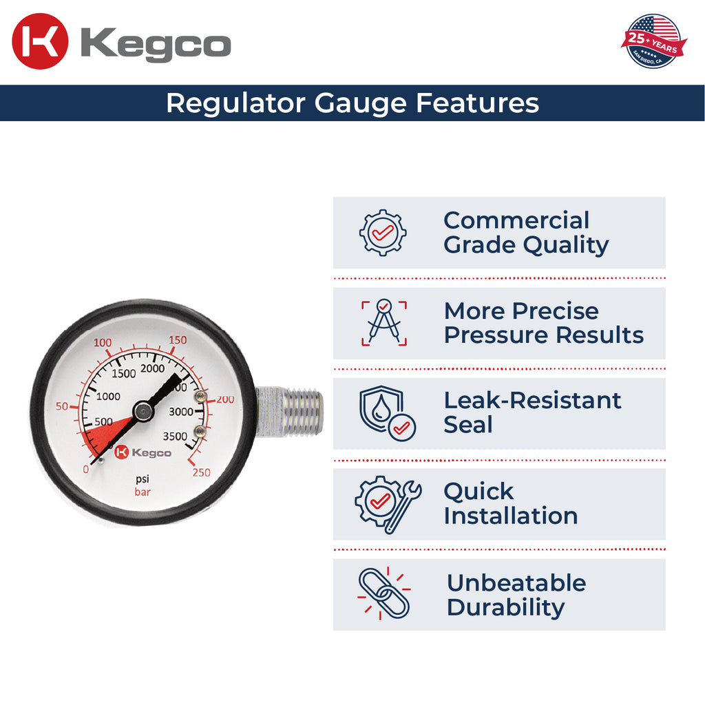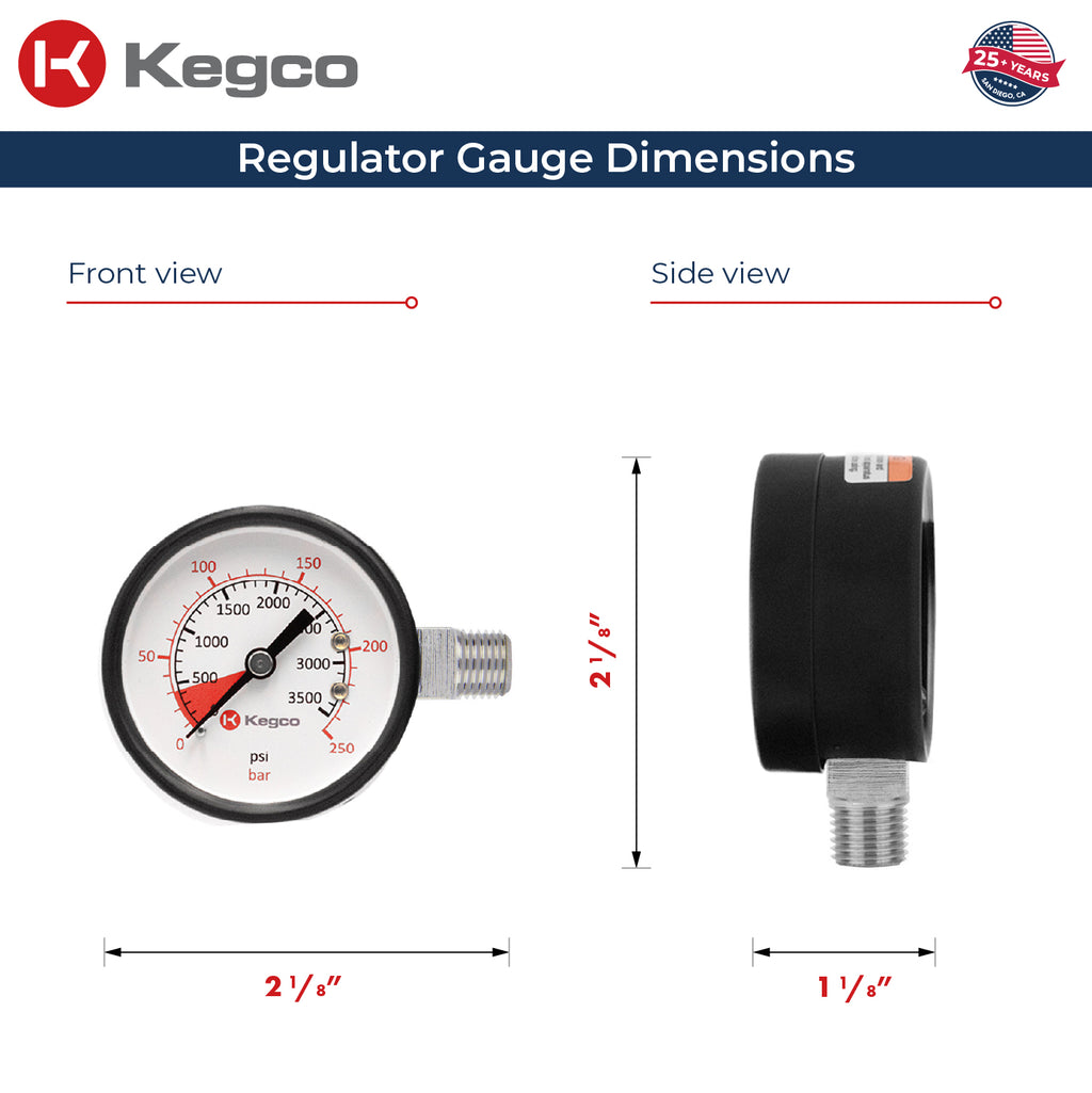 - The Kegco YH-76HPG High Pressure Replacement Gauge is capable of replacing any damaged gauge for the majority of regulator manufacturers