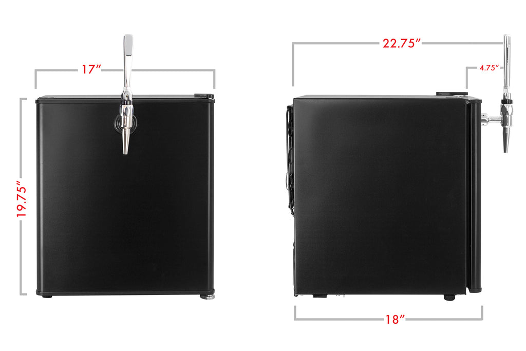 This javarator has a 1.34 cubic feet interior cabinet and is compatible with a 1.75 gallon ball lock keg, perfect for small gourmet batches and homebrew cold brew batches. Ball lock connections are easy to attach and securely connects the keg.