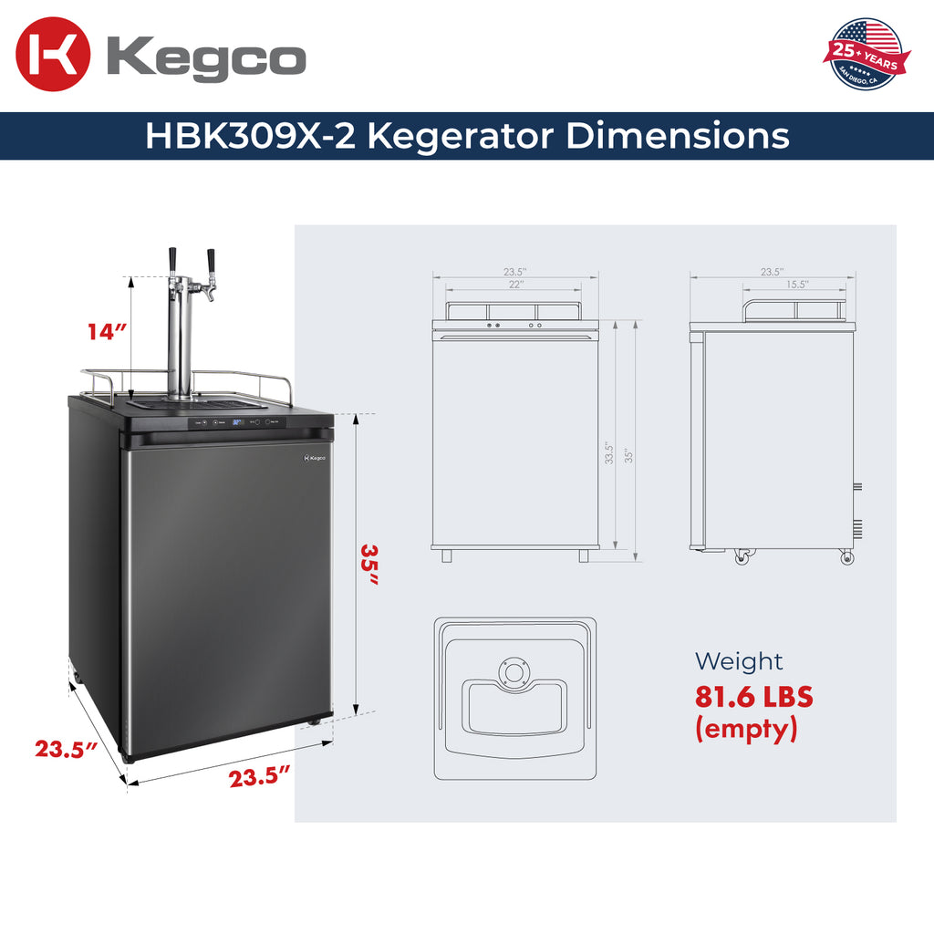 Spacious interior can easily hold up to three 5-gallon Cornelius ball lock home brew kegs, so you can keep multiple kegs stored at their ideal temperature and ready to dispense. It can also hold a 6 gallon bucket or carboy during fermentation.