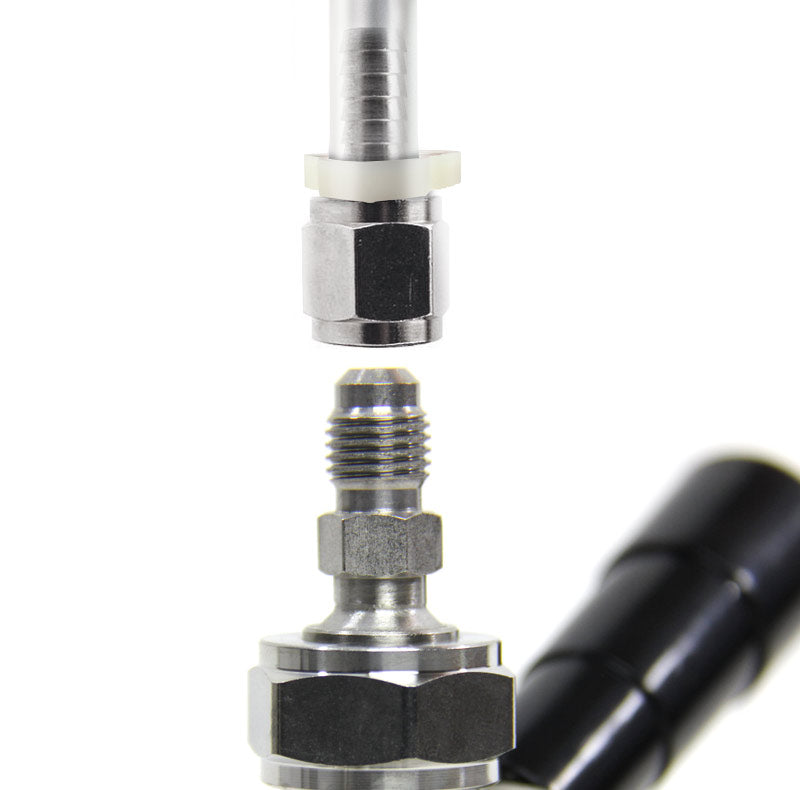 The Kegco Home Brew 1/4" MFL Ball Lock / Pin Lock Quick Disconnect Set can be used to easily change between commercial and home-brew kegs without having to change fittings or cut beer lines. When switching between kegs, simply unscrew the 1/4" MFL connector from the quick disconnect and screw the tailpiece and hex nut, not included, into place with your standard keg coupler. The set can connect to a standard commercial keg coupler with a hex nut. The Kegco Pin Lock Quick Disconnect Set is perfect for home brewers that enjoy both home brew and commercial keg beer.